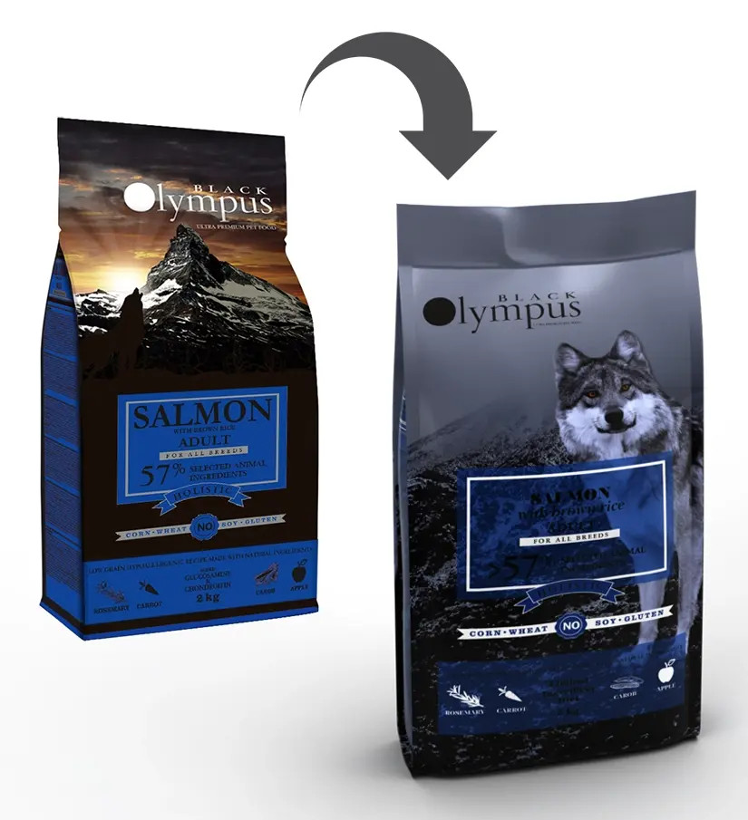 Lazac 46% (Dehidratált lazachús 30%, hidrolizált friss lazachús 16%), barna rizs, tápióka, állati zsír (10% - sertés,bárány), lazacolaj (1,5%), cékla pép, szentjánoskenyér, vitaminok és ásványi anyagok, F.O.S. (frukto-oligoszacharidok), dehidratált alma, dehidratált sárgarépa, sörélesztő, rozmaring kivonat, glükózamin (0,057%), kondroitin-szulfát (0,04%)