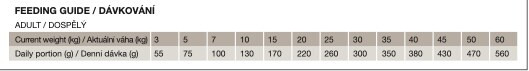 Összetevők: Szárított bárányhús (30%), édesburgonya, burgonyapehely, marhazsír (14%), rizsliszt (8%), friss báránymáj (5%), zabpehely (4%), szárított sütőtök (2%), szárított báránymáj (2%), kukoricapehely, szárított sárgarépa (1,2%), lenmag, szárított cikóriagyökér, szárított fűszernövények, béta-glükánok, glükózamin, kondroitin-szulfát, vitamin és ásványi anyag keverék.
